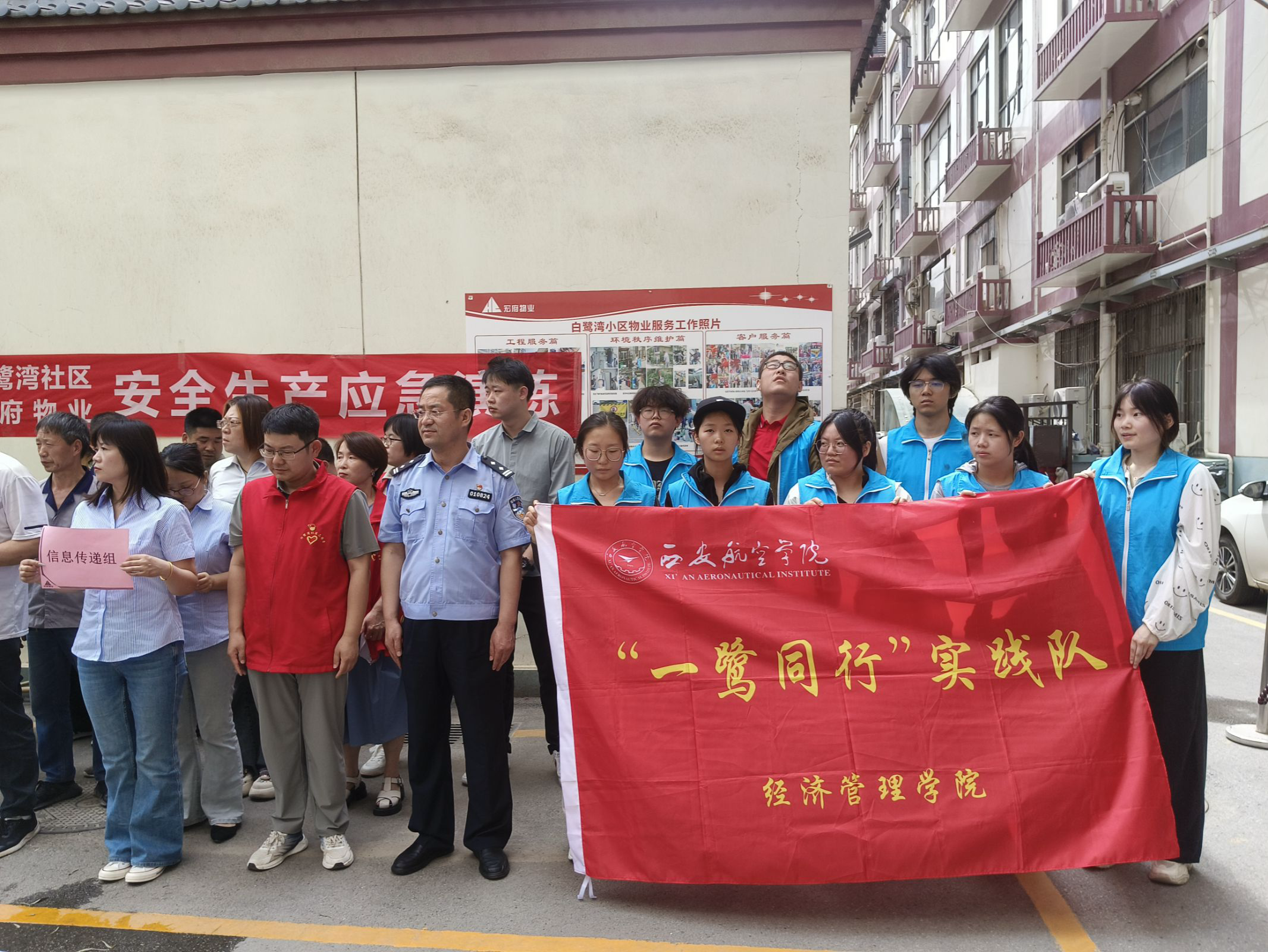 为积极引导老员工参与社区建设,2025年5月16日,beats365唯一官方网站“一鹭同行”实践队再赴白鹭湾社区,同西大街派出所、白鹭湾社区居委会、宏府物业联合开展了一场防汛应急演练,并开展红色主题教育学习活动,以实际行动筑牢安全防线,传递志愿服务精神。