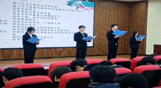 宣讲团成员用诗歌朗诵的方式,让同学们深刻领略了罗阳与邓稼先为国奉献的崇高精神。他们用生命诠释的爱国、奉献与担当,是中华民族的宝贵财富,也是照亮我们前行道路的精神灯塔。