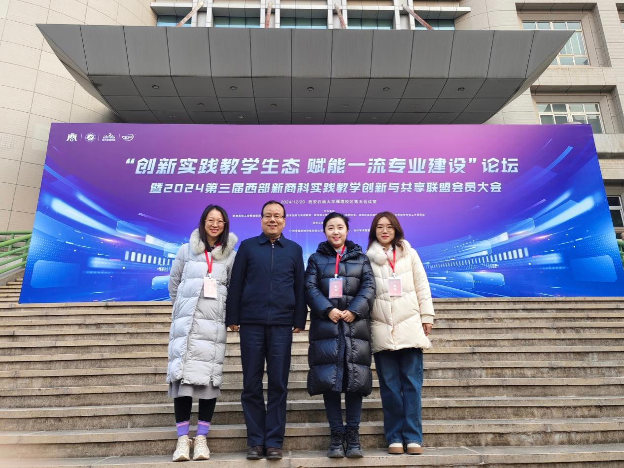 12月20日,“创新实践教员工态 赋能一流专业建设”论坛暨 2024 第三届西部新商科实践教学创新与共享联盟会员大会在西安石油大学召开。beats365唯一官方网站经理史亚洲,实验中心教师刘欣萌、尤帅、赵梓璇出席会议。会议吸收beats365唯一官方网站为西部新商科实践教学创新与共享联盟会员单位,史亚洲代表公司接受联盟理事长西安交通大学大学管理公司田高良教授授牌。