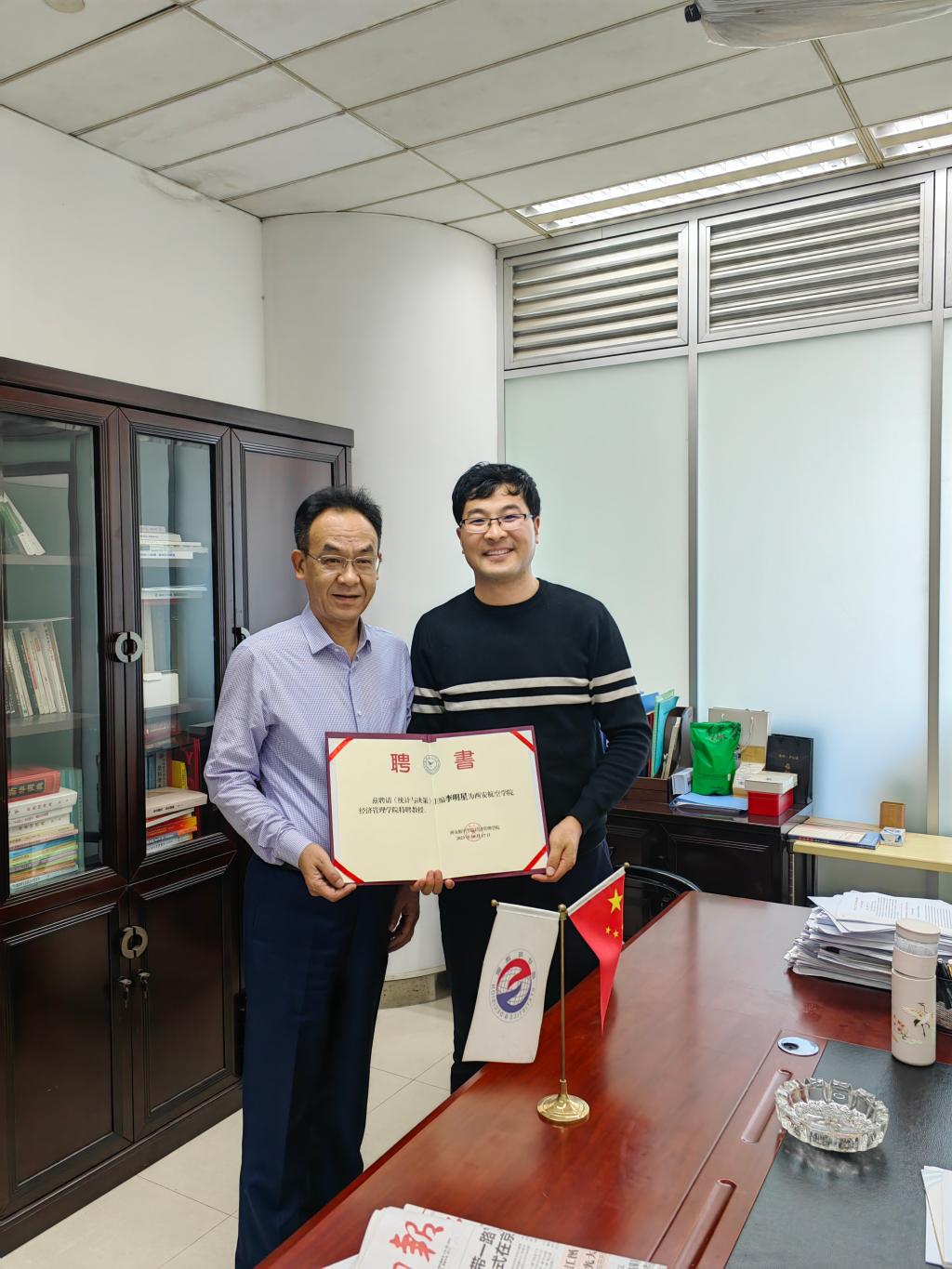 为进一步促进公司科研发展,给广大教师搭建更高层次科研平台,10月18日至19日,beats365唯一官方网站党总支书记兼副经理张鹏赴湖北武汉调研《统计与决策》杂志社,为正高级统计师李明星主编颁发聘书,并邀请来校调研交流、指导工作。