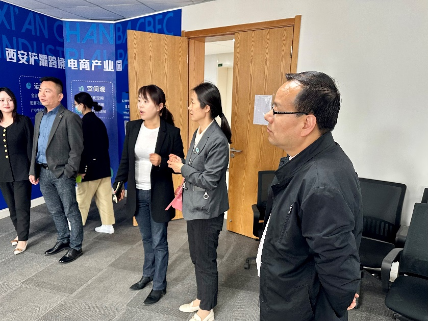公司教师一行在跨境电商产业园负责人陆闻,浐灞生态区投资商务局姚鑫等领导的陪同下,参观了园区的跨境电商企业孵化基地和跨境电商直播中心,详细了解园区企业的经营状况、运营模式、岗位需求、发展前景。陆闻、姚鑫详细介绍了浐灞生态区跨境电子商务产业园的招商定位、发展现状和入驻企业人才需求等基本情况。