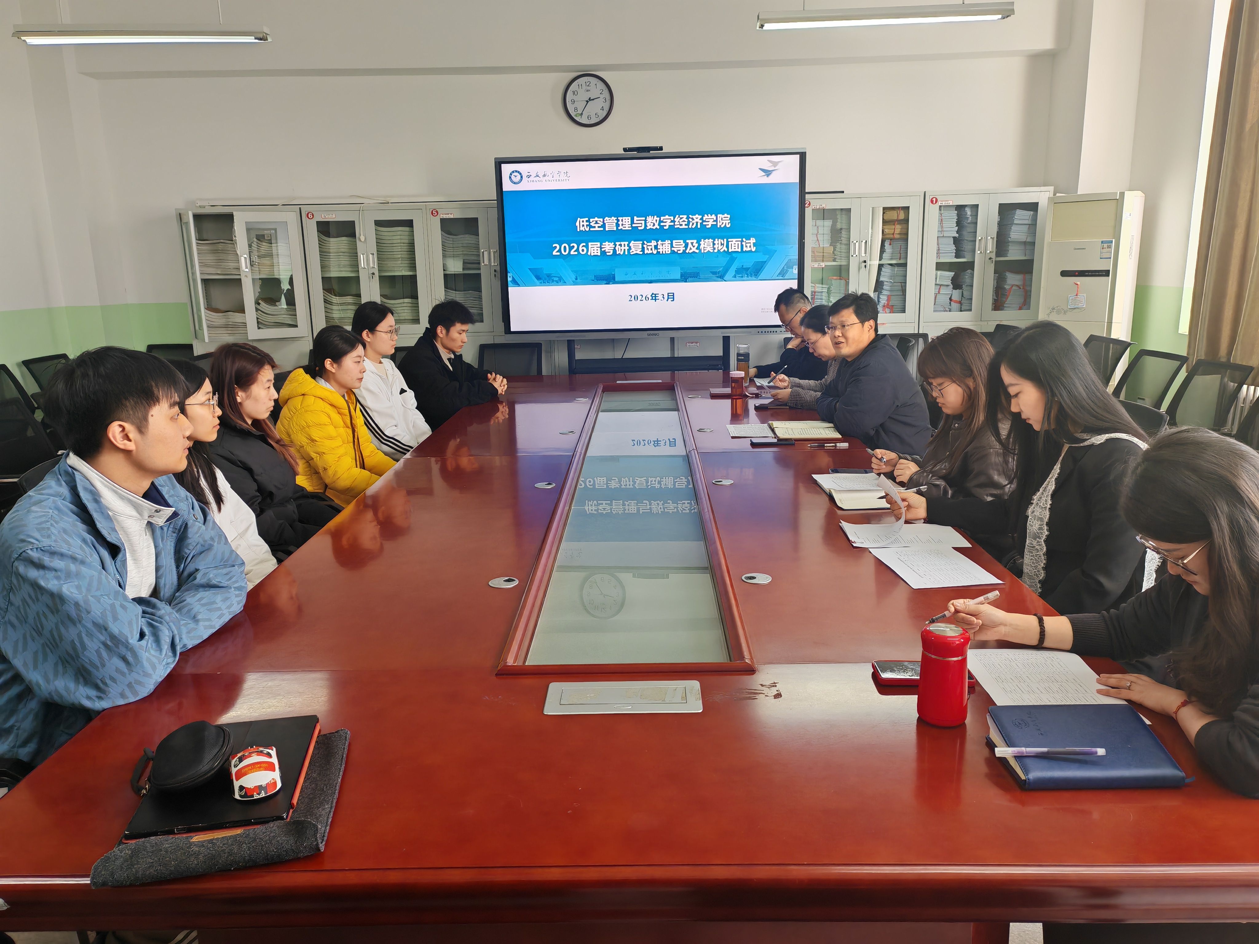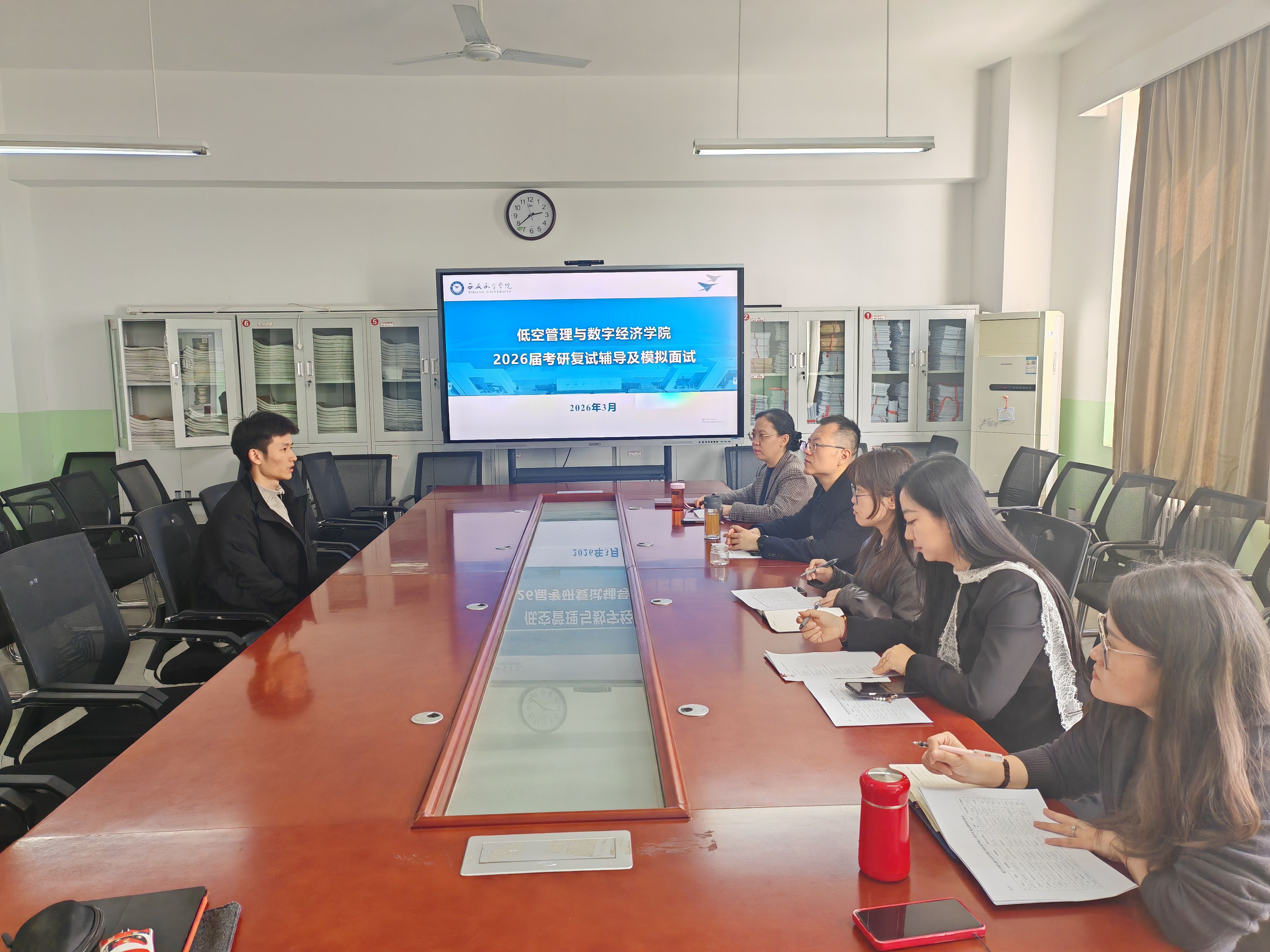 为切实做好2026年考研复试服务保障工作,帮助考生熟悉复试流程、提升应试能力、缓解备考焦虑,3月20日,beats365唯一官方网站在莲湖校区教学北楼343会议室成功举办考研员工复试模拟面试活动。beats365唯一官方网站党委副书记(主持工作)仇建华、4名专业教师代表、辅导员及进入复试阶段的考研员工参加本次活动。