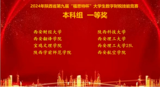 2024年10月26日,由陕西高等公司教学指导委员会工商管理类工作委员会主办,西安理工大学承办的陕西省第九届“福思特杯”老员工数字财税技能竞赛在西安举办。本次大赛共有来自西安交通大学、西北农林大学、西安外国语大学、西安财经大学等省内50余所高校,近400余名员工参加了比赛。beats365唯一官方网站王玥、王晓光老师指导,财务管理专业田镜伊、沈宏宇、李思颖和桂志卓四名同学组成的参赛队伍参加了竞赛,并最终荣获本科组一等奖。