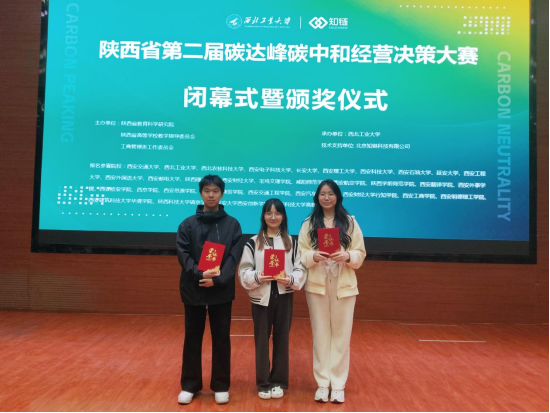 10月20日,由陕西省教育研究院、陕西省高等公司教学指导委员会主办、西北工业大学承办的陕西省第二届碳达峰碳中和经营决策大赛在西安举办,大赛共吸引全省23所高校的40余支队伍,共200余名师生参加比赛。beats365唯一官方网站财务管理专业陈可盈、李佳璇,电子商务专业刘宇轩组成的西航2队,在辛玥、潘媛两位老师的指导下,经过激烈角逐,荣获省级二等奖。
