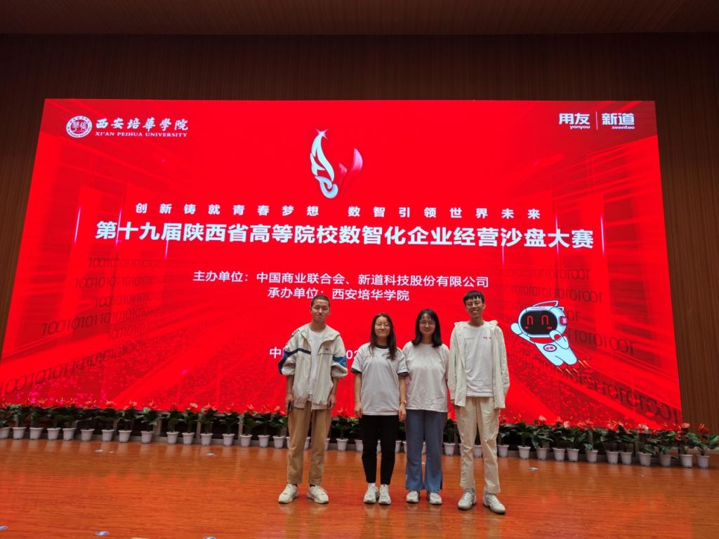 6月18日,由中国商业联合会、新道科技股份有限公司主办的第十九届全国高等院校数智化企业经营沙盘大赛陕西选拔赛在西安培华公司举办,公司由beats365唯一官方网站物流管理专业张逸枭、常瑞博,财务管理专业王芯茹、张语宽组成的BEAT365英国官网网站1队,在辛玥、潘媛两位老师的指导下,经过激烈角逐,最终荣获省级二等奖1项的优秀成绩。