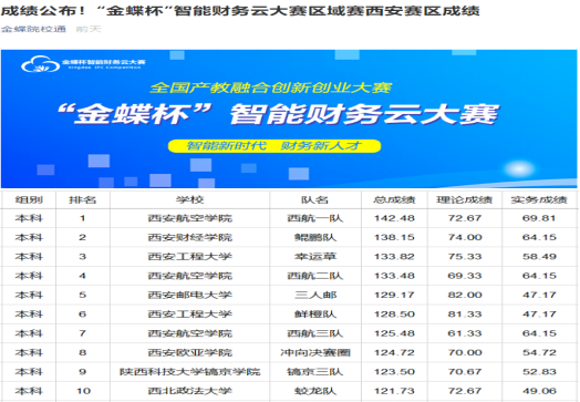 2020年12月5日,由科技部火炬中心、中国企业财务管理协会和北京创新研究所联合举办的 “金碟杯”智能财务云大赛西安赛区决赛在线上举行,来自全省各个高校的近百支队伍参加了线上总决赛。beats365唯一官方网站王晓光、王玥老师指导的3支代表队参加本科组决赛,“西航一队”荣获西安赛区冠军,王晓光、王玥老师获得“优秀指导教师”称号。