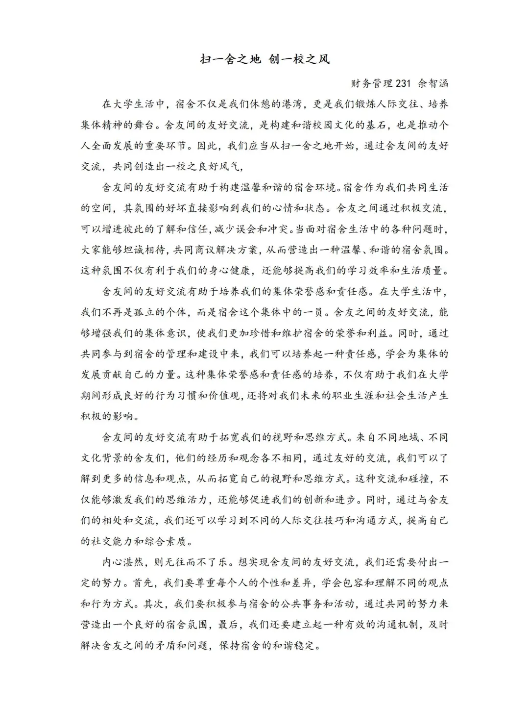 01“建设文明宿舍 共创美好宿舍”征文比赛