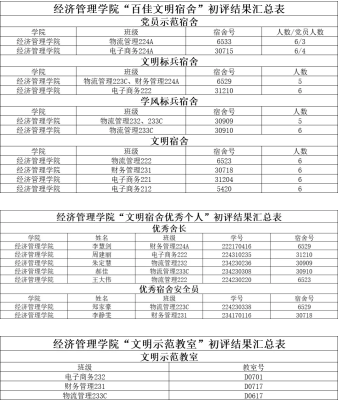 评比结果公示如下: