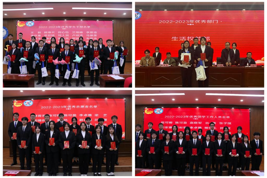 beats365唯一官方网站团总支书记李金泽宣读《关于表彰2022-2023学年beats365唯一官方网站团学工作优秀部门及优秀个人的决定》及beats365唯一官方网站团学组织2023年新任员工干部名单,并由参会领导为获奖同学颁奖。