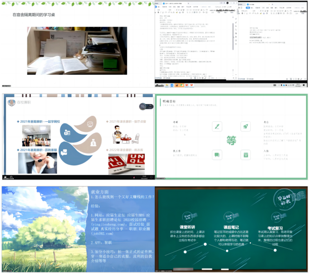 分享会上,财务管理192班王婷结合上岸兰州财经大学的经验,从择校、初试复习备考及面试等方面分享进行了心得分享,提醒大家要正确定位并选择适合自己的院校、专业,做好学习规划;电子商务192班吴晓婷结合上岸西安科技大学的经历,从备考经验及心态调整等方面进行了分享,希望2024届考研的同学能够始终坚守初心;财务管理214A班王哲从备考公务员的学习方法、面试两方面提醒大家要打好基础,勤学多练方能出成绩,勉励同学们路虽远行则将至,事虽难作则必成;电子商务191班阴海清同学从求职路上的心态变化、简历制作、面试抉择以及入职体验等方面向同学们介绍了求职经验,鼓励大家在求职过程中积极尝试,并及时总结反思调整自己的目标;财务管理193班谢杨洲、物流管理191班袁安妮、物流管理192C班陈蒙娟三位同学一方面从个人获奖受助经历向大家分享了自己的学习经验,另一方面从毕业实习、面试、以及工作体会等方面向大家分享了自己的求职之路,提醒大家提前了解就业信息,确定好自己未来的职业方向,抓住机会。