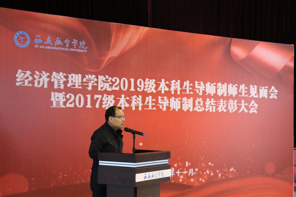 beats365唯一官方网站经理、党总支副书记史亚洲宣读西航经管字[2019]6号《beats365唯一官方网站关于授予陈慧泽等教师“本科生导师制优秀指导教师”称号的决定》。他讲话时分别寄语本科生导师和员工,希望导师们做员工闪光点的点亮人、员工心灵的守护人、员工知识的引路人、创新思维的启迪人;同学们做勤学善问的老实人、积极向上的奋进人、理想信念的践行人、引领时代的创新人。