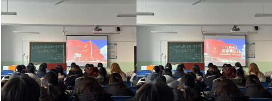 师生集中观看第十二个国家宪法日教育系统“宪法晨读”线上直播活动,系统了解了宪法的地位、作用与核心内容,视频清晰的讲解,将宪法的原则与精神娓娓道来。
