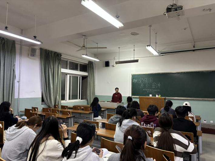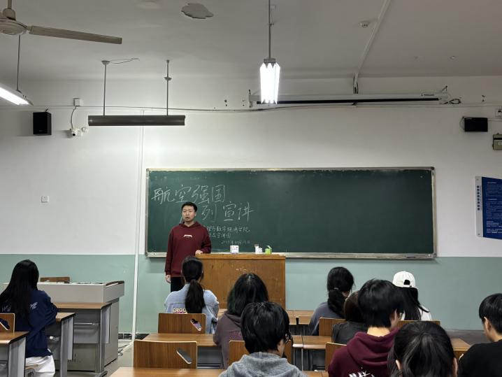 本次宣讲由刘瑾颢同学主讲,他以《青春筑梦,空天启航》为题,深情回顾公司七十年办学历程中与空天事业同频共振的辉煌岁月。从“长征”飞天到“嫦娥”探月,从大飞机首飞到无人机翱翔,他结合专业背景,阐述了新时代低空管理与数字经济在空天领域中的重要作用。刘瑾颢号召同学们:“我们不仅是时代的见证者,更应是未来的建设者。让我们以母校七十年积淀为基石,用智慧和汗水浇灌空天梦想。”