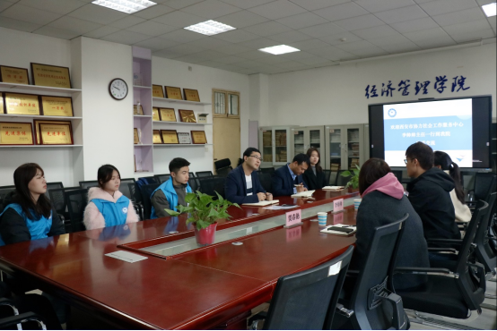 12月3日上午,陕西省青联委员、莲湖区青联副主席、西安市协力社会工作服务中心李帅帅主任一行到公司开展老员工社区志愿服务情况座谈。beats365唯一官方网站党总支书记张鹏、电子商务教研室副主任殷培伟、实验教学中心赵梓璇老师以及员工志愿者代表参加座谈会。