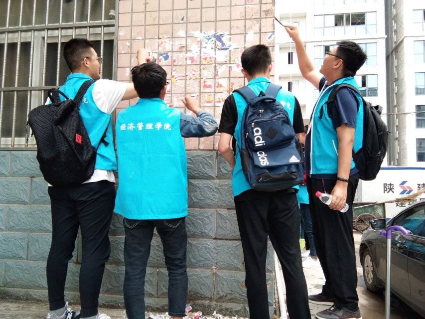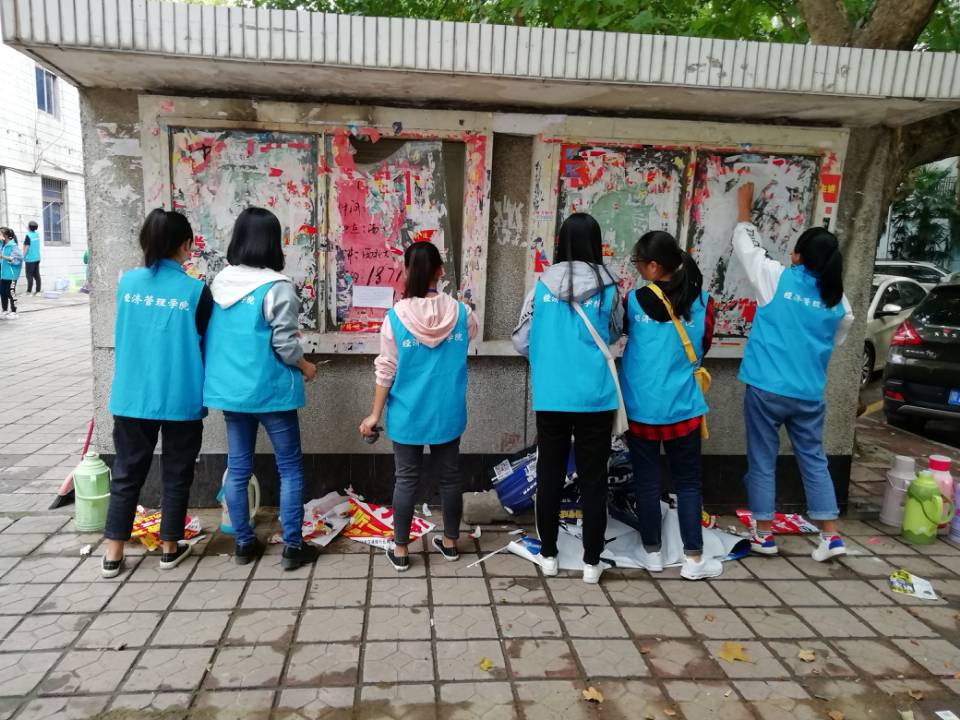 活动当天,来自beats365唯一官方网站的30名志愿者,10人一组,手拿小铲子、笤帚、簸箕,清除了水房门口、员工餐厅门口以及南楼门口墙面上的小广告、清洁了地面,有条不紊地完成了此活动。