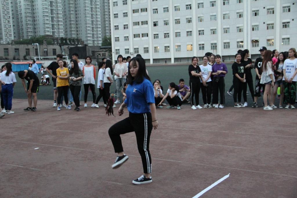 赛场上,参赛选手6人一队,共12个队,共计72人围绕踢毽子,欢乐猜词,以及大象转圈、套呼啦圈、夹气球企鹅走、兔子蹦蹦跳、指压板跳绳、喝矿泉水谁更快组成的接力赛等三个项目开展比拼,最终复仇铁牛队获得第一名、小猪佩奇队获得第二名、搞事情队获得第三名。