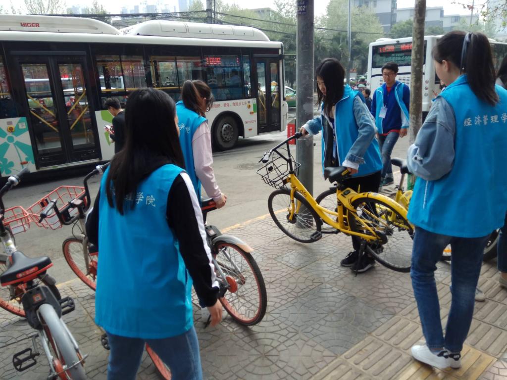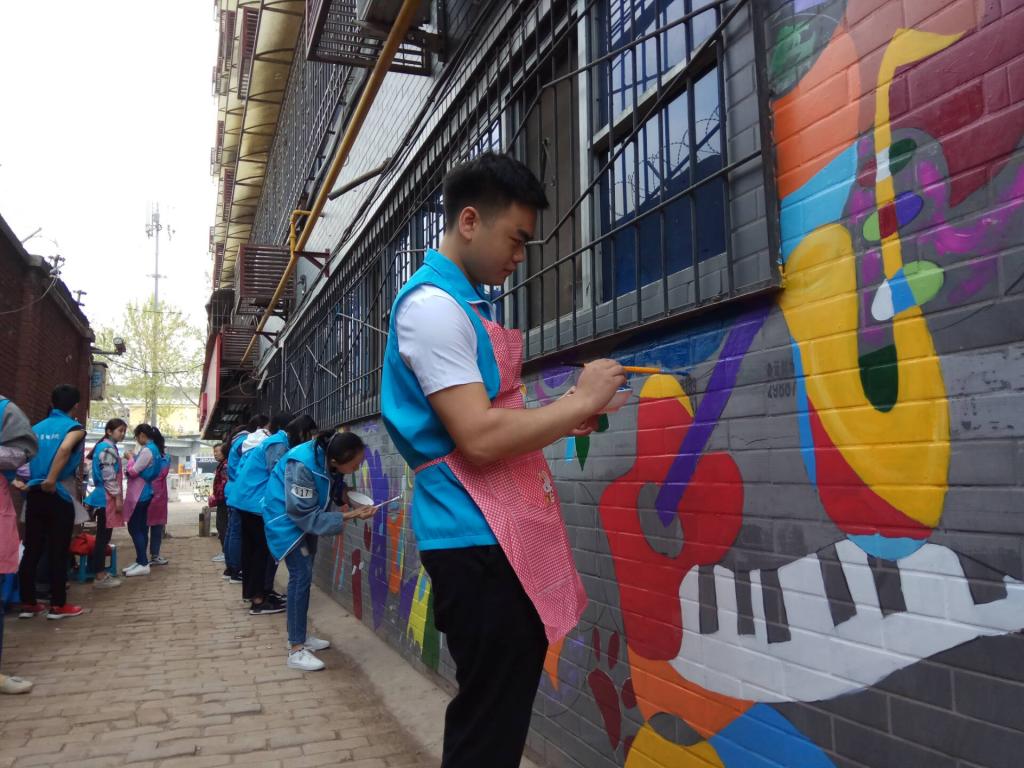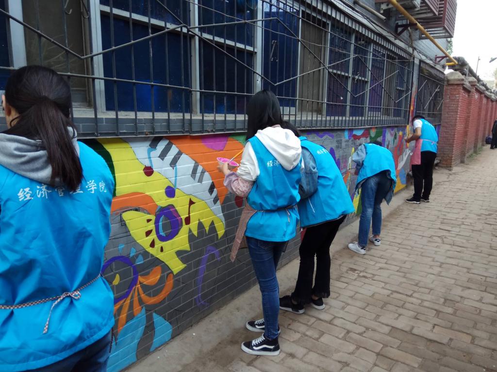 活动当天,志愿者在枣园东路、大庆路等地捡拾路上垃圾,向行人宣传保护环境,爱护古城的意识;沿途整理乱停乱放的共享单车,将东倒西歪的共享单车扶正,摆放整齐。随后来到城西客运站附近的公交小巷进行彩绘,在曾经广告遍布的旧墙上彩绘,为美丽的古城增添一笔绚丽的色彩。