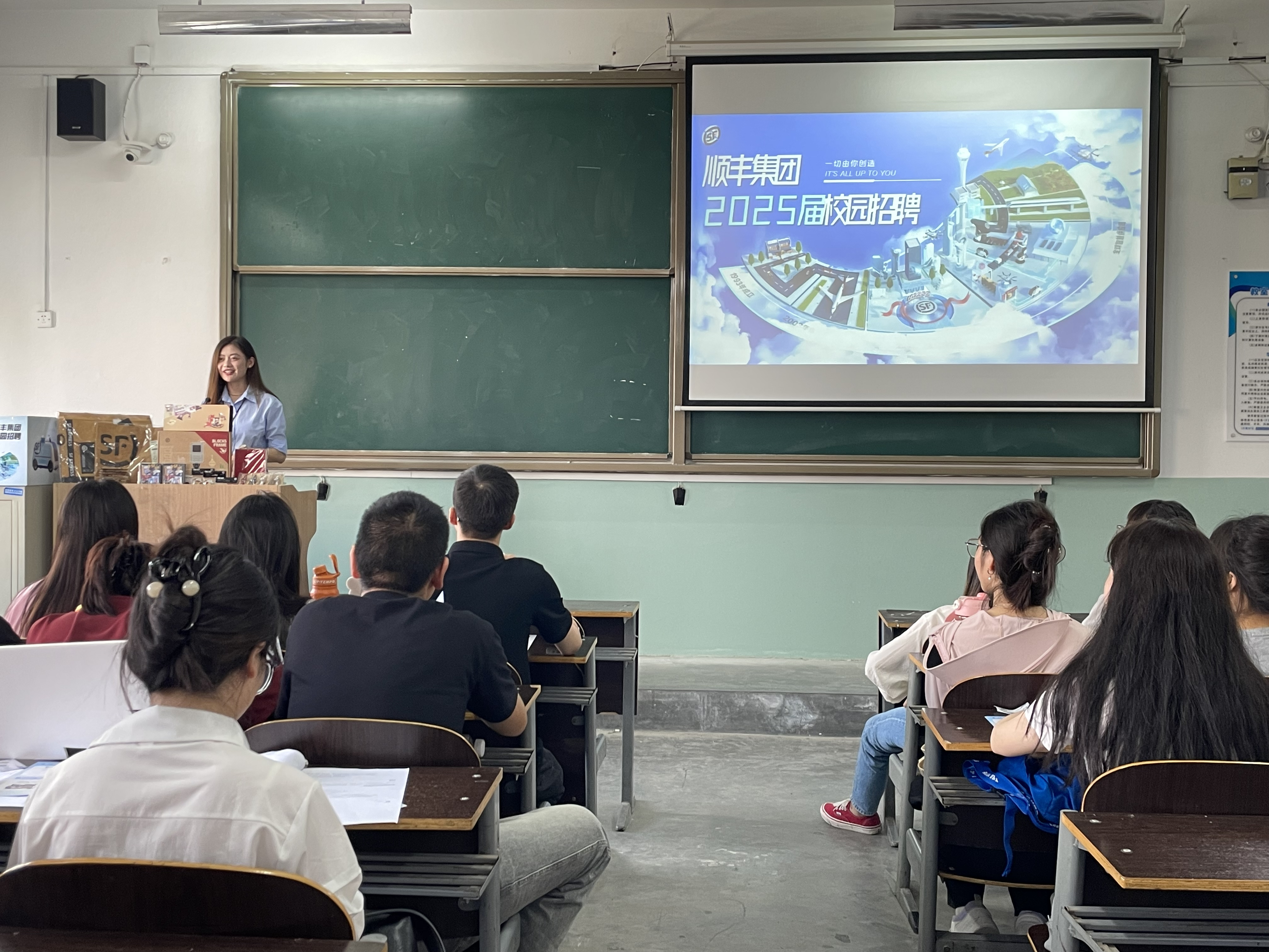 顺丰陕西分公司人力资源部招聘经理强鲁苗首先向与会毕业生介绍了校招的流程及时间安排,并通过抽奖环节活跃了宣讲会氛围。