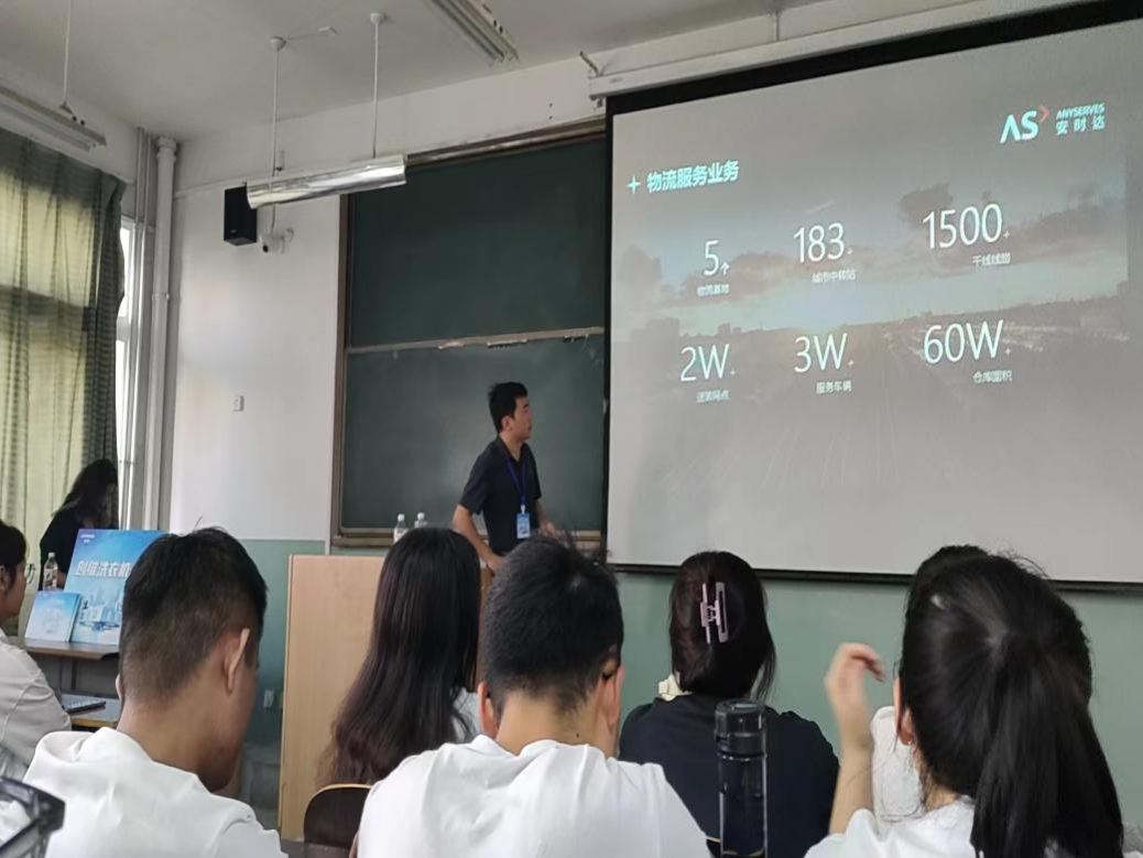 安时达公司行政人力资源部副经理杨龙从企业文化、企业发展历程、员工培训模式以及安时达六大业务板块四个方面向与会毕业生介绍了安时达的业务情况、经营情况、产业版图和薪资待遇等。通过观看企业宣传视频及杨龙经理的详细讲解,同学们进一步加深了对安时达公司的组织体系、主要岗位职责、重点业务和职业发展规划等方面的了解。
