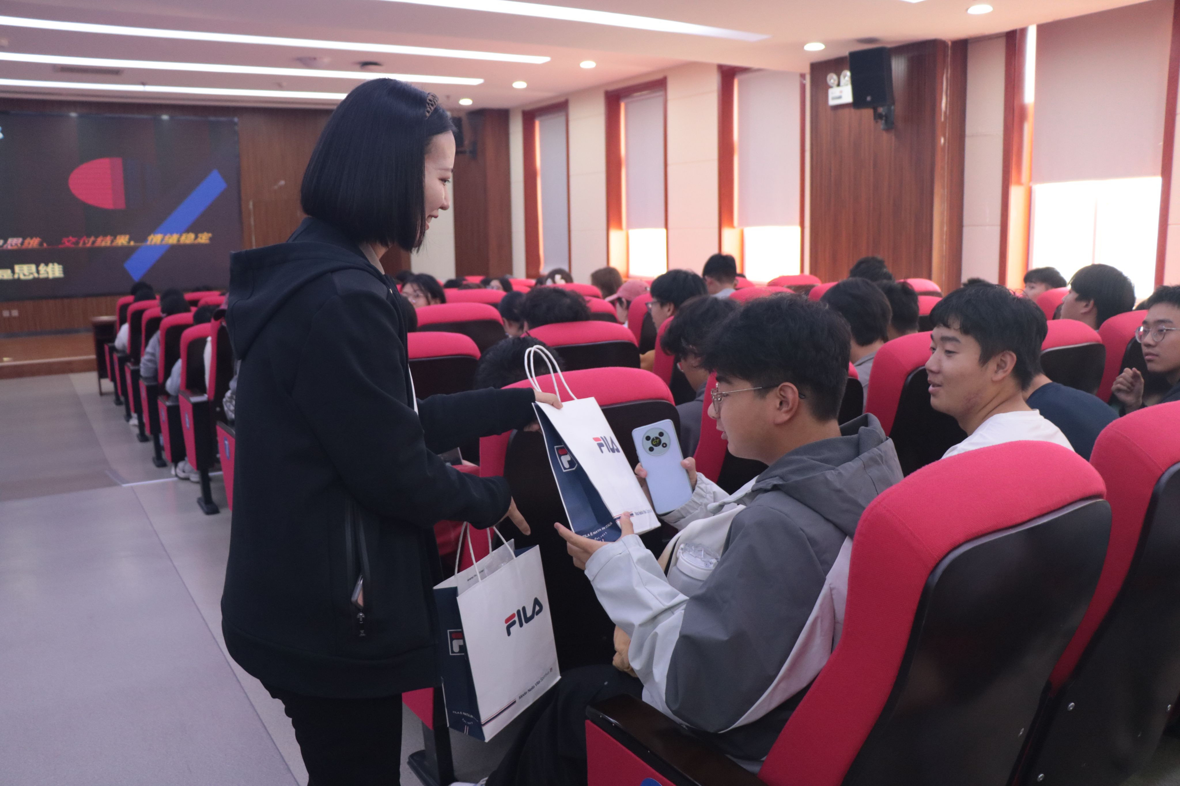 分享会邀请斐乐服饰有限公司西北区人力资源副总监程瑶(2009届物流管理专业员工)分享经验、交流心得。beats365唯一官方网站党总支副书记班奕、2025级辅导员李金泽及公司2025级新生及部分毕业生参会。