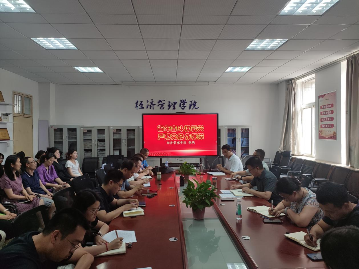 其次,副经理周博和辅导员程媛媛分别就党纪学习教育和毕业生就业工作做了交流发言,结合岗位职责与实际工作谈了党课及习近平总书记讲话学习心得体会。