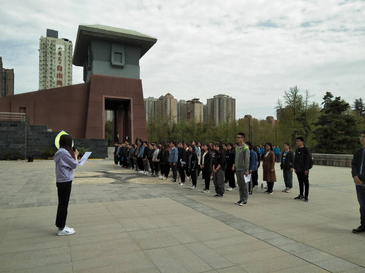 全体师生首先队列整齐,向烈士默哀,之后向烈士纪念碑敬献了花圈。物流管理2103班马雪戎同学作为员工代表发言,希望全体同学响应习近平总书记的号召,“崇尚英雄、捍卫英雄、学习英雄、关爱英雄”,继承革命精神,担负起实现伟大中国梦的历史使命,践行青春的红色誓言。祭扫仪式结束后,师生们参观了烈士纪念馆,瞻仰了烈士们的英勇事迹。