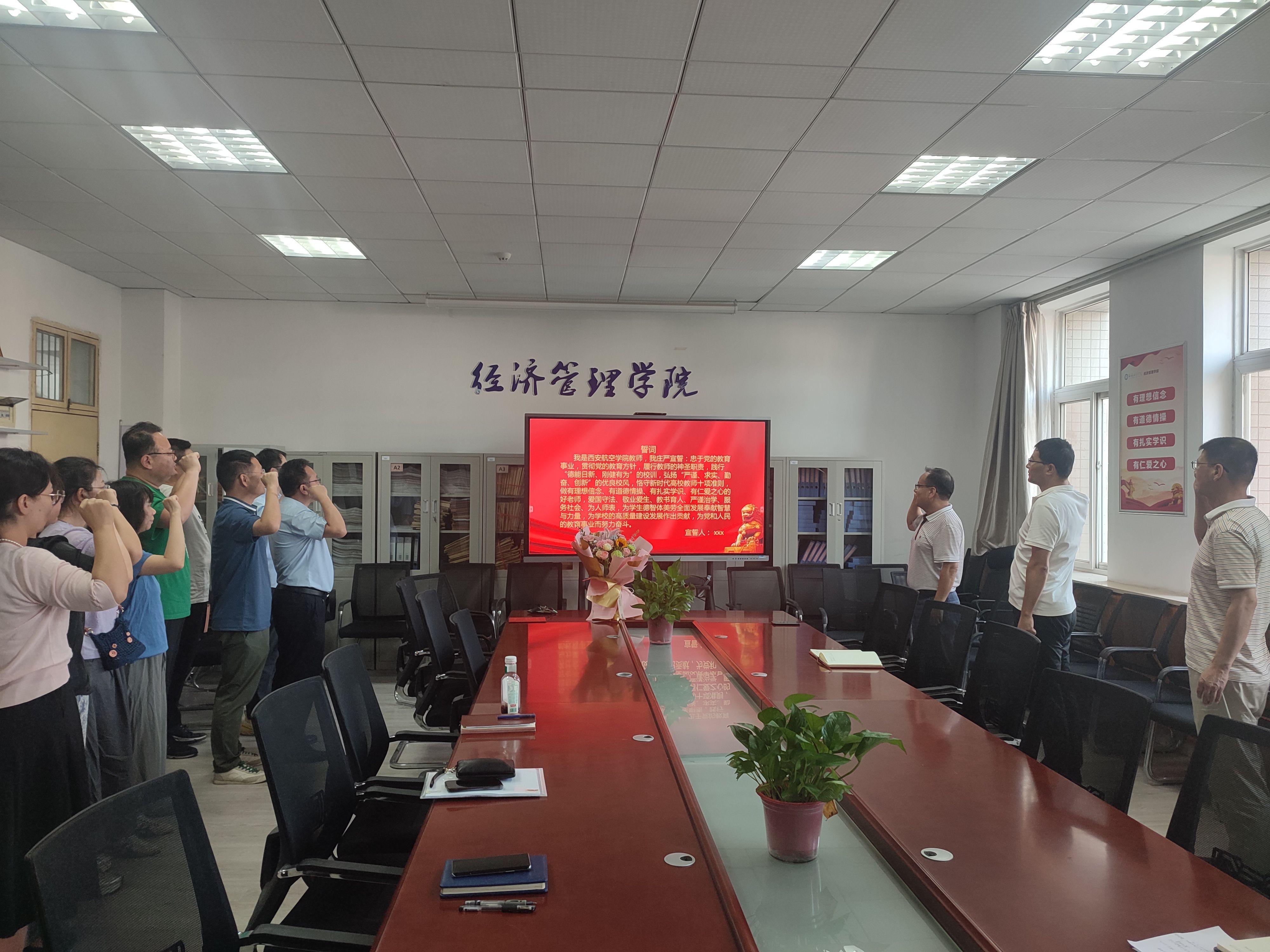 教师座谈会结束后,与会教师进行了庄严的宣誓,并表示要践行誓词诺言,忠于党的教育事业,履行教师的神圣职责,恪守新时代高校教师十项准则,争做“四有”好老师,切实增强教师教书育人责任感、使命感和荣誉感。(文、图/高杨,审核/史亚洲)
